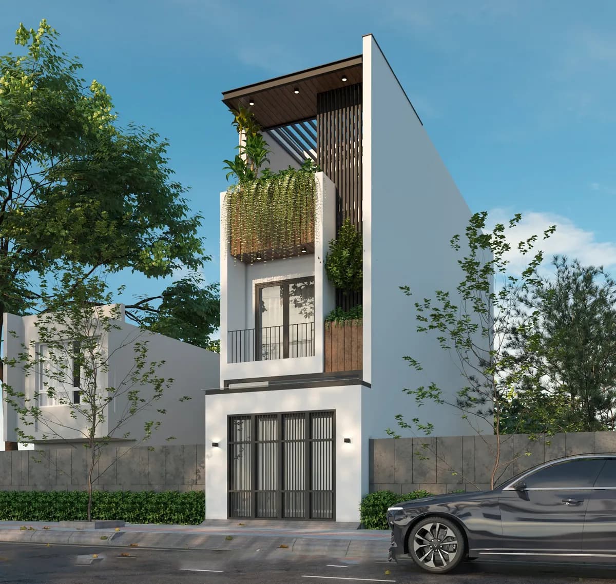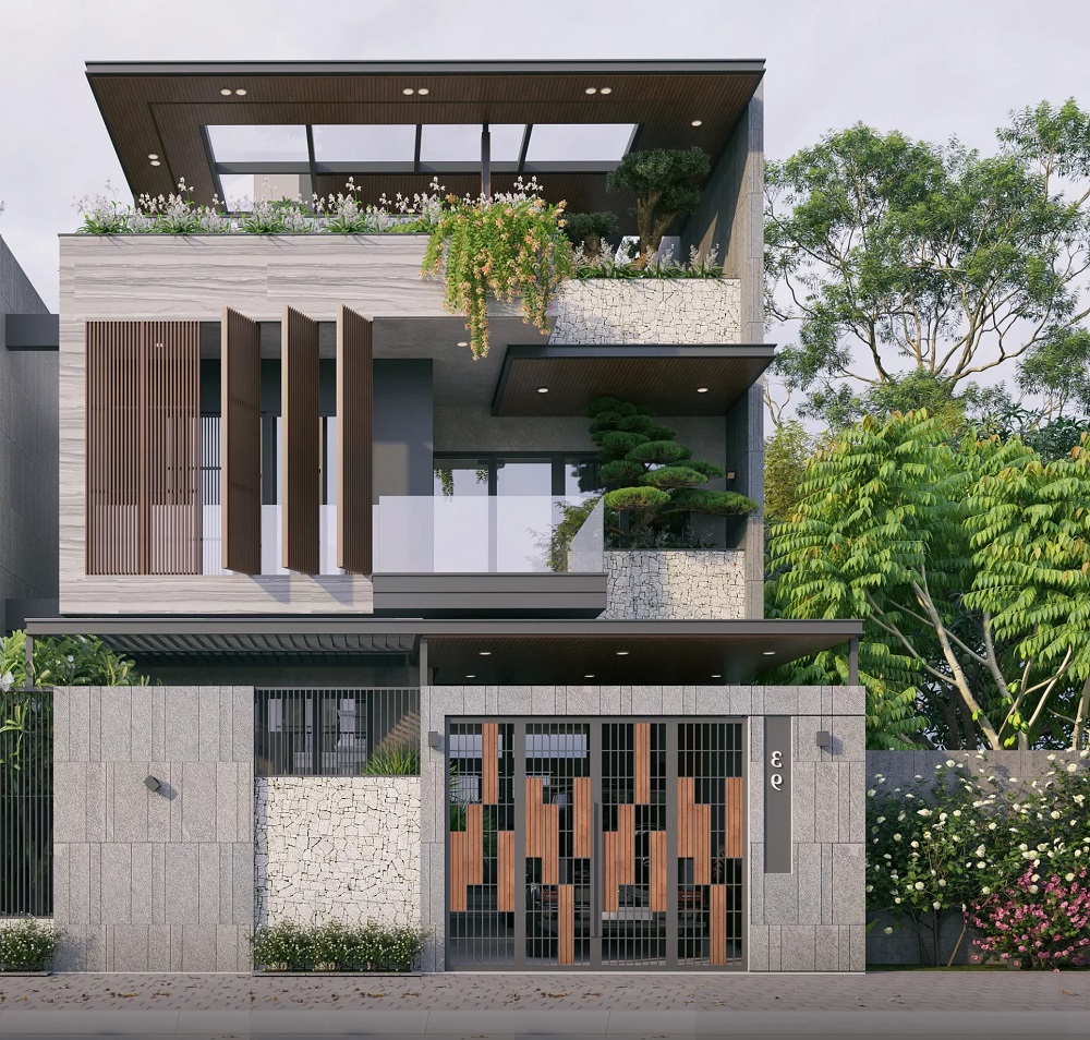 Ban công xanh không chỉ làm dịu không gian đô thị mà còn tạo điểm nhấn sinh động cho mặt tiền. Khi cải tạo mặt tiền nhà phố, việc kết hợp cây xanh, giàn treo hoặc chậu cây nhỏ sẽ giúp ngôi nhà gần gũi với thiên nhiên hơn.