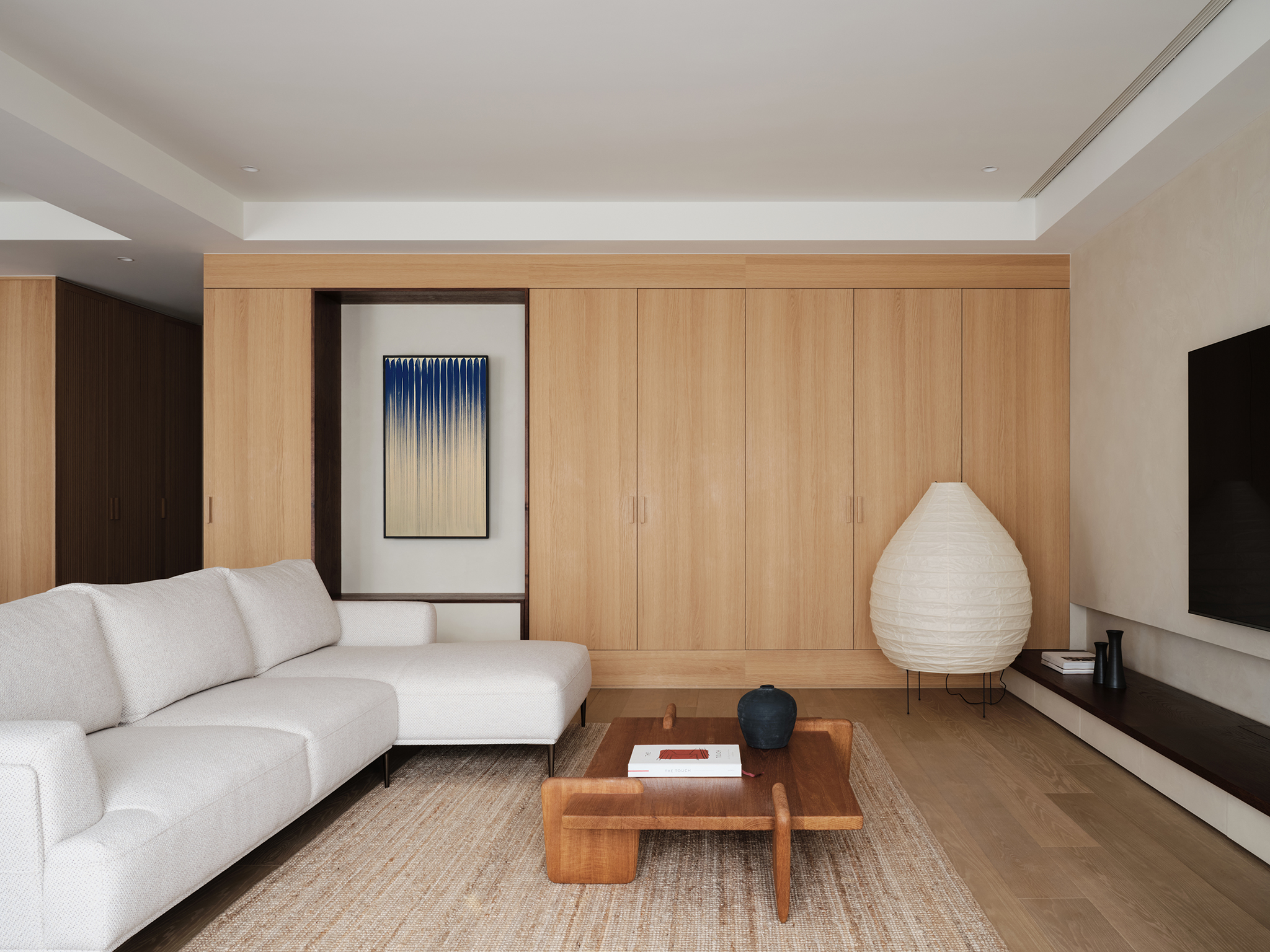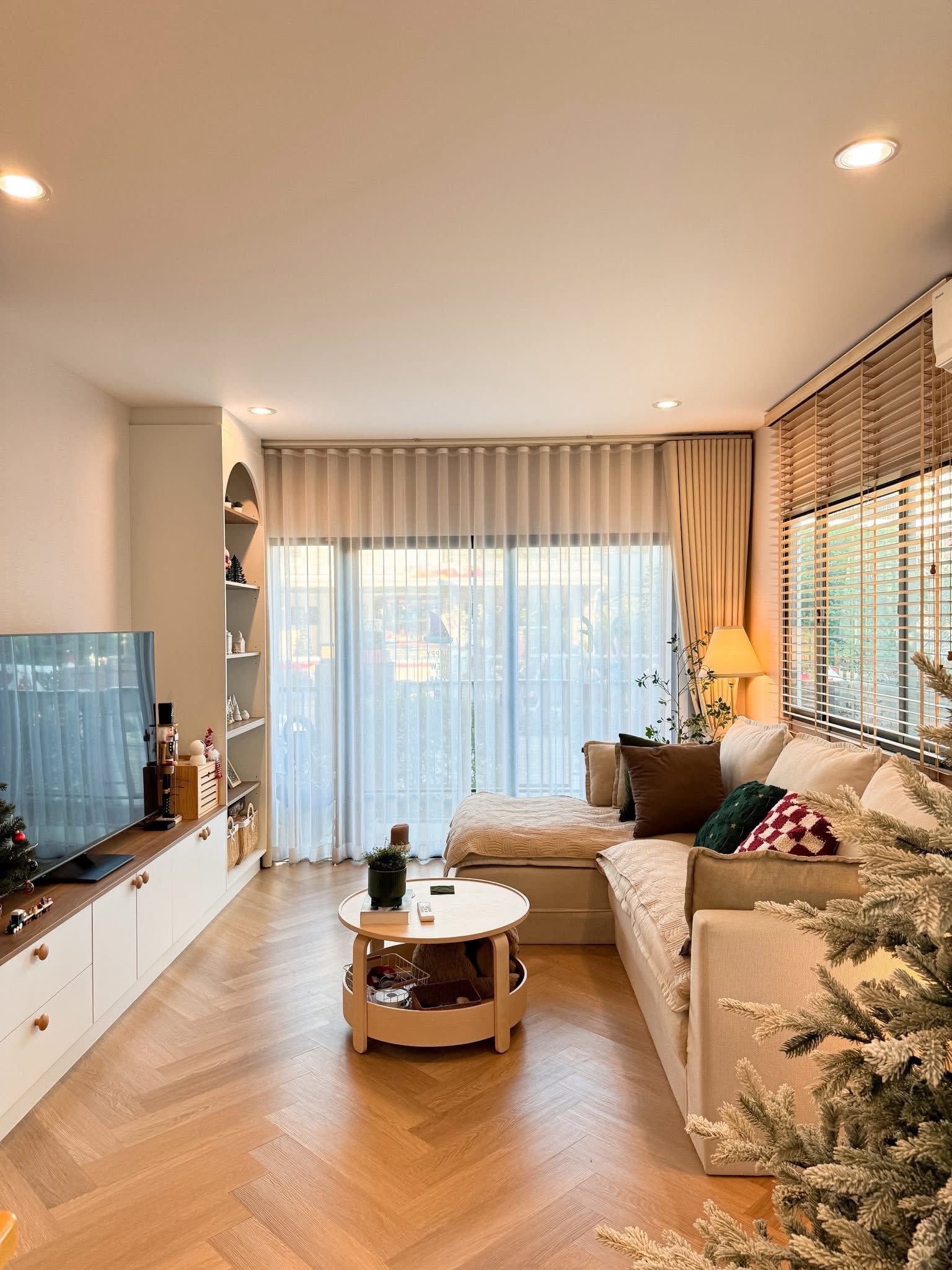 Ánh sáng là yếu tố then chốt quyết định cảm xúc không gian. Việc kết hợp hài hòa giữa ánh sáng tự nhiên và ánh sáng nhân tạo như đèn âm trần, đèn hắt tường hoặc đèn trang trí giúp phòng khách trở nên ấm cúng, có chiều sâu và tăng tính thẩm mỹ rõ rệt.